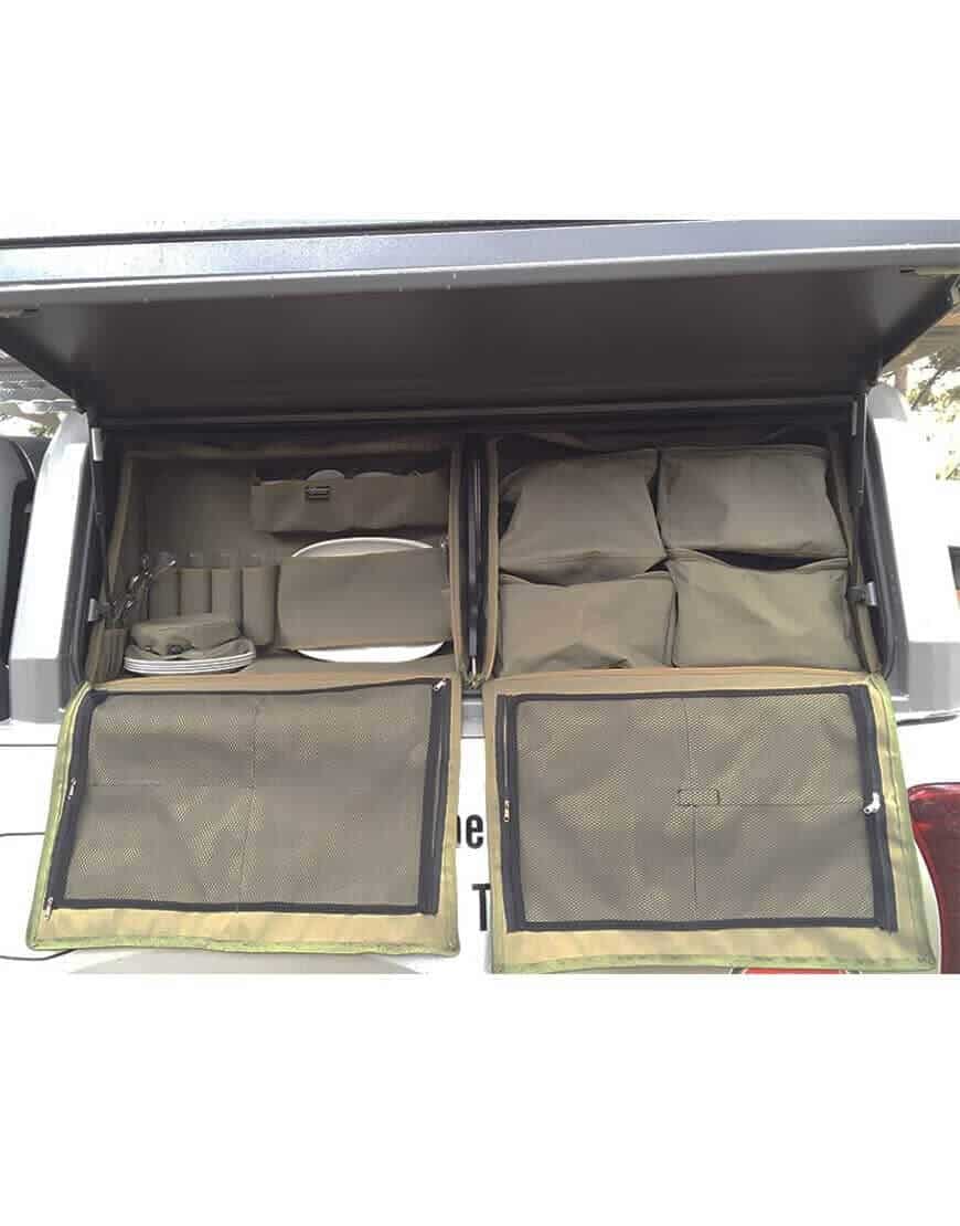 The Canopy Shelf Utility Bag from The Bush Company USA is a fantastic solution to maximise the storage in your canopy gull wing shelves. Whether your are enjoying a break travelling/camping or using your vehicle for work, this storage solution has all of the practical design features and quality manufacturing that The Bush Company USA products are renowned for. The dimensions of the bag are: Height 460mm, Width 600mm, Depth at Base 300mm, Depth at Top 100mm.