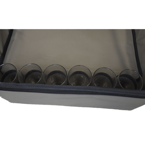 The Deluxe Camping Dining Set from The Bush Company is ideal for any camping/touring setup. It comes in a 420g thick rip stop canvas carry case with reinforced sides, base/lid and high quality YKK zippers. Inside, you will find a full 6 person dining set, consisting of melamine crockery, full size meat platters and large side plates stored in a cleartop canvas bag, and deep bowls stored in the middle of the lower section surrounded by tempered heat proof glass mugs. For added protection, tall glass tumblers are stored in individual canvas sleeves at the front of the case.