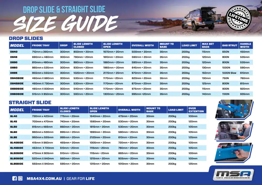 5 sizes available to suit a variety of applications, click here to view size compatibility chart. MSA 4X4 Fridge Barriers available for all models.